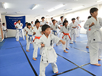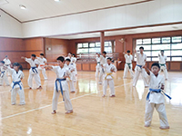 「空手の命は組手に有り、されど組手の命は基本に有り」の極真精神を基本に、繰り返し行う「型」稽古では、仮想の相手に立ち向かう強い心が備わり、繰り返す事で自分の成長を身体で感じ、失敗を恐れず全力で取り組む事を指導しています。
